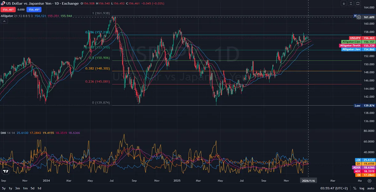 The USD-JPY pair continues to trade in a bullish tone on the daily timeframe, holding near the upper resistance levels seen at the beginning of 2025. Recently, the US Dollar has been supported by hawkish undertones from the Federal Reserve, particularly with Richmond Fed President Thomas Barkin scheduled to speak on the 2026 economic outlook and monetary policy. Barkin’s comments may offer insight into future rate decisions, and traders will be watching closely for hawkish cues. In addition, recent US Services PMI data from S&P Global reflected economic resilience, helping to support the greenback. On the Japanese side, data from the Bank of Japan and Ministry of Finance points to stable monetary base figures and steady demand for Japanese Government Bonds, but no aggressive policy shifts are evident yet. As a result, the USD remains dominant, and USD/JPY trades at elevated levels approaching a key resistance.